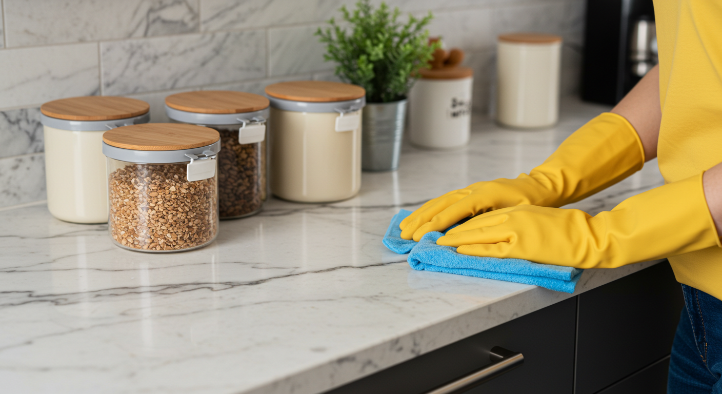 The rule is simple: clean while you cook. Avoid piling up dishes, wipe down cabinets daily and do a deep clean weekly. Organize cabinets by